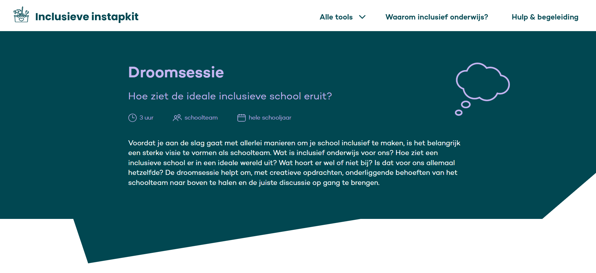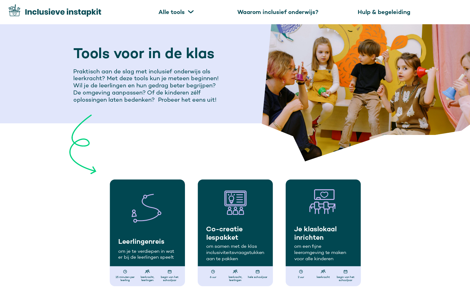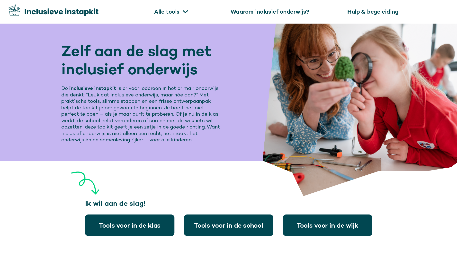 De inclusieve instapkit is een toolkit voor professionals in het primair onderwijs, vol met technieken en methoden om aan de slag te gaan met inclusief onderwijs. Er zijn tools voor in de klas, waarmee je direct als leerkracht kunt beginnen. De tools voor op school helpen je als directeur om samen met je schoolteam naar een inclusieve school toe te bewegen. De tools voor in de wijk zorgen voor een gestructureerd stappenplan waarmee je als wijk samen de verantwoordelijkheid kan dragen voor alle kinderen in de buurt. Bekijk de inclusieve instapkit meteen op https://inclusieveinstapkit.nl/.